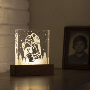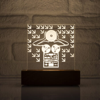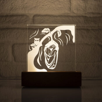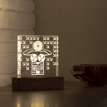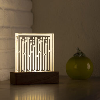 The box, which houses the light source, is handmade and crafted from Sapelli wood, a member of the Mahogany family.