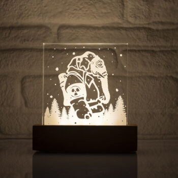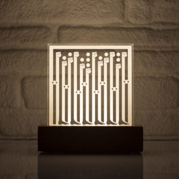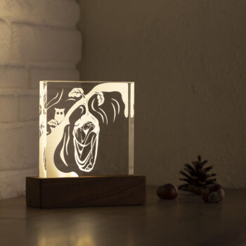 The plexiglass featuring the design enhances the three-dimensional effect due to its thickness of 2 cm.