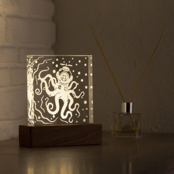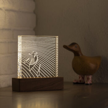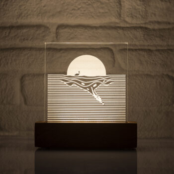 The box, which houses the light source, is handmade and crafted from Sapelli wood, a member of the Mahogany family.