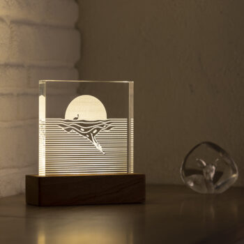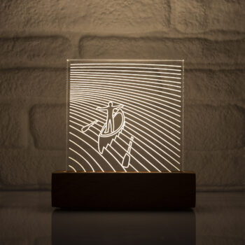 The plexiglass featuring the design enhances the three-dimensional effect due to its thickness of 2 cm.
